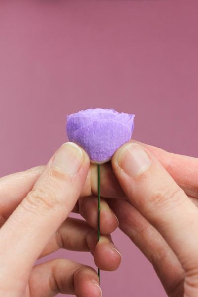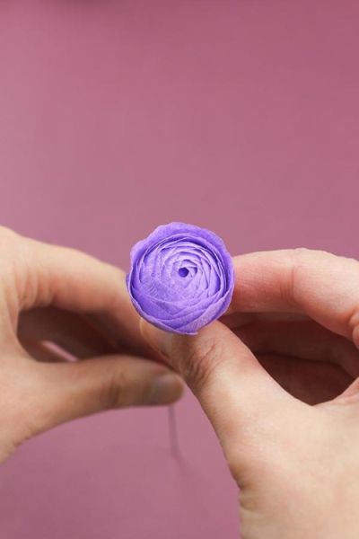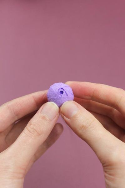 Logo após, para finalizar a sua flor, arrume as pétalas de forma com os dedos. E está pronto!