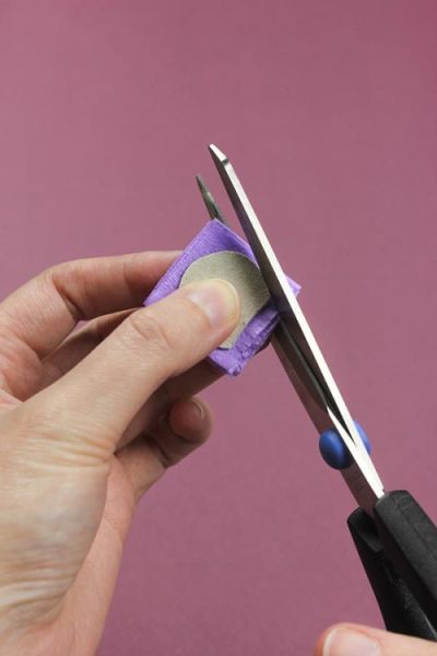 Em seguida, corte tiras de papel crepom com largura de 3 cm.